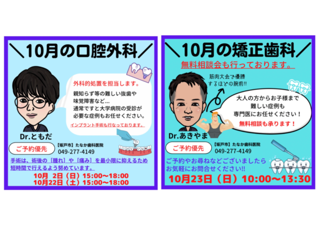 10月の【口腔外科診療日】【矯正無料相談会】のおしらせ