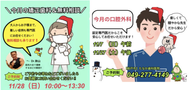 11月の【口腔外科診療日】【矯正無料相談会】のおしらせ
