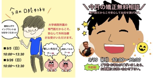 9月の【口腔外科診療日】【矯正無料相談会】のおしらせ